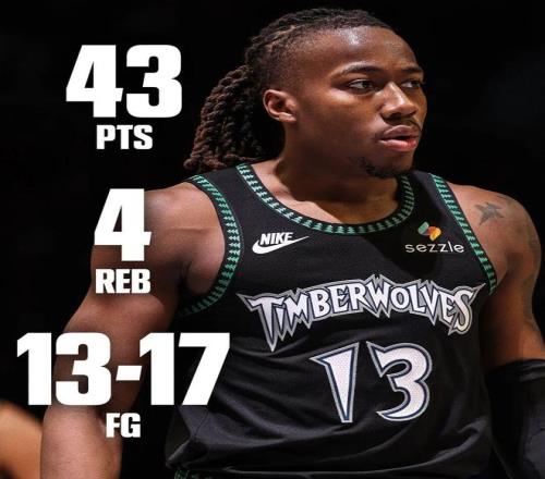 有趣的是,25分當(dāng)時(shí)刷新了森林狼隊(duì)史季后賽替補(bǔ)最高分,僅僅兩天后,他就用又一場(chǎng)43分大幅提高這一紀(jì)錄。