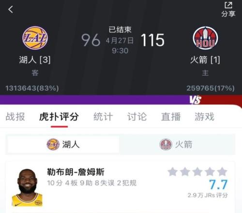 懂球帝:《火箭115-96輕取湖人1-3挽救賽點,申京19+6,詹姆斯10分9助8失誤》2026年4月27日央視網(wǎng):《詹姆斯10+9阿門23+7 湖人客場慘敗火箭總比分3-1》2026年4月27日虎撲體育:《雷迪克:詹姆斯41歲了,任何額外休息時間都是有益的》2026年4月16日