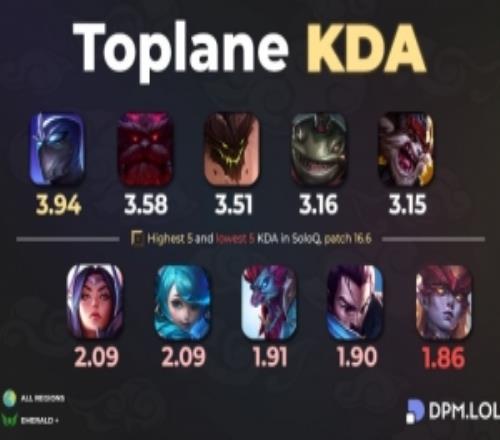 全球統(tǒng)計單排KDA最高和最低的5位上單英雄:慎最高、新版龍女最低