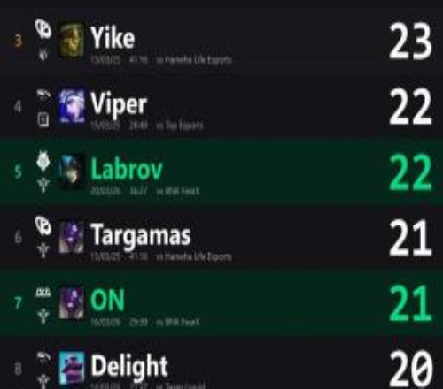 體育播報3月26日宣近日外媒統(tǒng)計先鋒賽單場最高助攻。25先鋒賽 Delight對陣TES 芮爾 3125先鋒賽 Targamas對...