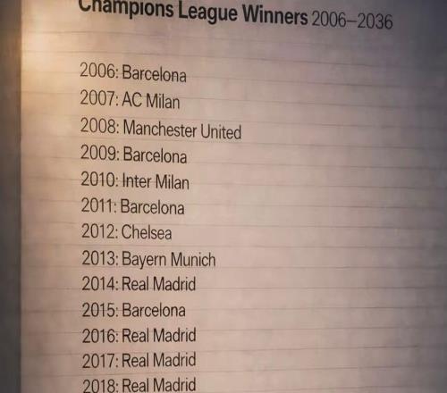 2006年歐冠決賽還沒踢,有人就在網(wǎng)上貼出了未來12年的冠軍名單。當時沒人當真——畢竟預測巴薩、曼聯(lián)、皇馬輪...