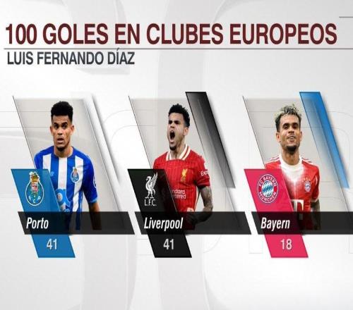 里程碑,路易斯迪亞斯在歐洲足壇已打入100球