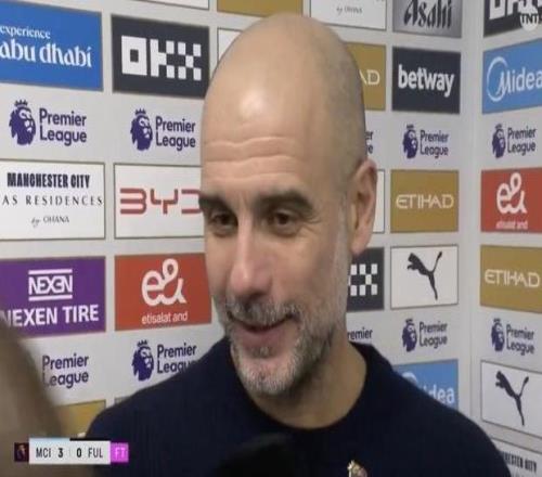 英超第26輪,曼城主場3-0擊敗富勒姆,賽后,曼城主帥瓜迪奧拉接受了TNT體育的采訪。佩普,恭喜。三粒進球,零封對手,這...