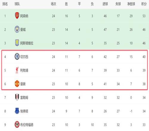 本場利物浦順利拿到3分,再加上切爾西也逆轉(zhuǎn)西漢姆,英超積分榜的形勢也發(fā)生了變化。2大豪門已經(jīng)反超了曼聯(lián),其中切爾西殺進(jìn)前四,利物浦位居第五。接下來,曼聯(lián)將在主場迎戰(zhàn)富勒姆,如果能擊敗對手,他們就將重新回到前四的位置。