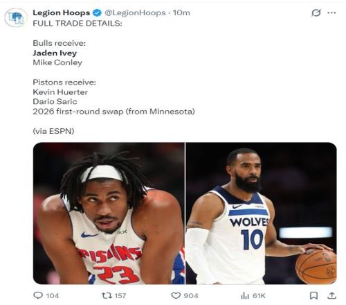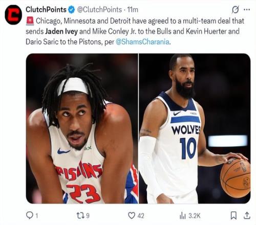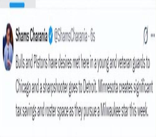 根據(jù)Shams的說法,這筆三方交易,公牛與活塞得到了各自需要的人才,一位年輕球員與一位經(jīng)驗豐富的后衛(wèi)加盟芝加哥,而一位投手則加入底特律,明尼蘇達在本周會繼續(xù)追逐揚尼斯-阿德托昆博,他們成功節(jié)省了奢侈稅并騰出了大量的球員名額。