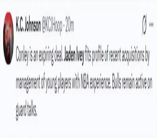 公牛記者KC-約翰遜發(fā)聲:康利的合同即將到期,艾維這位年輕后衛(wèi)是公牛管理層近期考察過的,公牛隊一直都在努力引進后衛(wèi)人才。