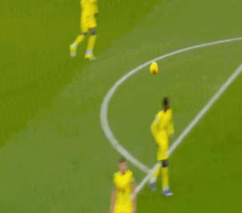 第38分鐘,費(fèi)爾南德斯開出角球,梅努前點(diǎn)回做,禁區(qū)弧無人盯防的姆貝莫推射破門,1比0!
