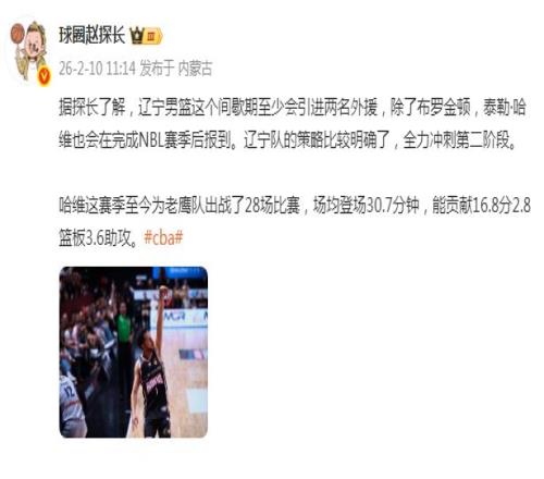 值得一提的是,本賽季的外援上限是8人次,遼寧男籃連續(xù)簽約兩位新外援后,已經(jīng)使用了7人次。