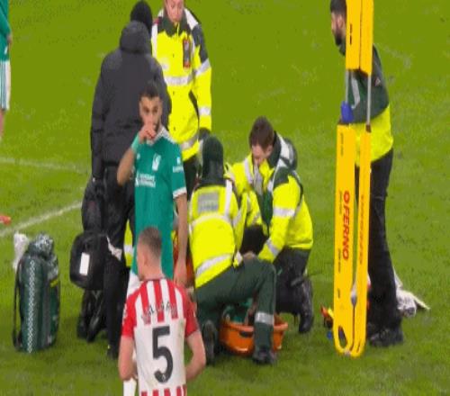 經(jīng)過數(shù)分鐘的治療,遠藤航被擔(dān)架抬出場外,斯洛特被動調(diào)整,喬-戈麥斯緊急出戰(zhàn)。