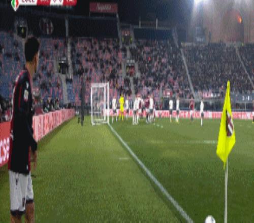 第33分鐘,博洛尼亞左側(cè)角球,卡斯特羅搶點(diǎn)破門,博洛尼亞1-0拉齊奧
