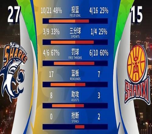 開場后沒多久上海男籃就展現(xiàn)出極強的統(tǒng)治力,尤其是替補登場的劉錚,他單節(jié)拿到11分,幫助上海男籃在首節(jié)就建立起兩位數(shù)領先優(yōu)勢。【上海男籃 27-15 山西男籃】