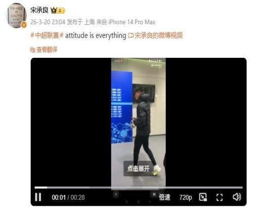 而這段視頻在社媒發(fā)布后,引發(fā)了球迷和媒體人的熱議。對于王鈺棟的舉動,媒體人宋承良質(zhì)疑其擺譜、耍大牌:“attitude is everything。(態(tài)度決定一切)”