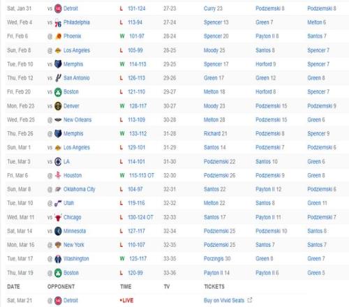 自1月31日以來勇士隊(duì)的21場比賽他們只贏了6場比賽,庫里缺席的20場比賽輸?shù)袅?4場比賽,雖然庫里的訓(xùn)練師兼籃球表現(xiàn)教練布蘭登-佩恩聲稱庫里本賽季肯定會(huì)回歸,可目前庫里依舊沒有確定的復(fù)出時(shí)間表。