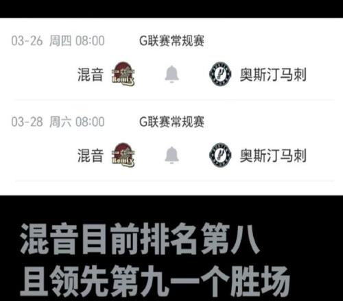 混音的季后賽席位主要競爭對手是圣迭戈快船,在今天稍晚的比賽里,如果快船輸給斯托克頓國王,那么混音就確定打進季后賽。