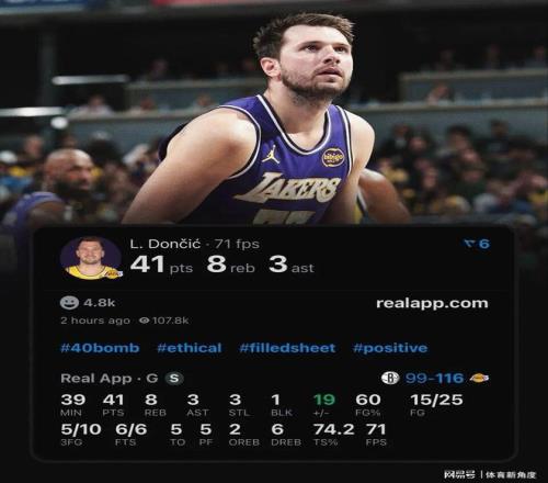 今天這場比賽,東契奇那可真是拼了,足足打了39分鐘呢!全場25次出手,命中了15球,三分球更是10投5中,最終拿到了41分8個籃板3次助攻,不過也有5次失誤、3次搶斷和1次蓋帽。哇又是40+的表現(xiàn)?。∵@已經(jīng)是東契奇最近第多少場40+的比賽了呀?在湖人14勝2負的這段時間里,東契奇可是有4場砍下40+,1場拿到50+,還有1場更是轟下了60+的驚人數(shù)據(jù)!