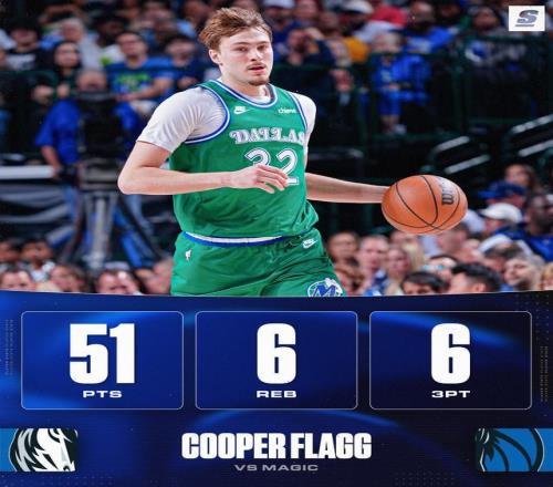 憑借這波瘋狂的得分秀,弗拉格成功把布蘭登·詹寧斯此前保持的“20歲零52天”的紀(jì)錄拍在了沙灘上,自己穩(wěn)穩(wěn)坐上了最年輕50分先生的寶座。