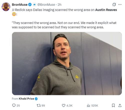 雷迪克對達拉斯的醫(yī)院感到不滿,雷迪克表示:這是我們第二次進行MRI檢查,因為在達拉斯的影像中心他們掃描的位置是錯誤的,我們告知他們掃描了錯誤的區(qū)域但他們還是掃描錯誤了。