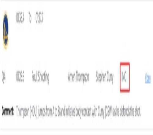 第一次漏判發(fā)生在距離比賽結(jié)束還剩1分28秒時,報(bào)告指出,火箭球員阿門-湯普森在防守庫里投籃時,從A點(diǎn)移動到B點(diǎn)并主動與庫里發(fā)生身體接觸。這是一次漏吹的防守犯規(guī),庫里當(dāng)時上籃命中,本該吹罰2+1,裁判沒有響哨,庫里少了一次罰球機(jī)會。這次漏判是勇士吃虧,火箭獲利。
