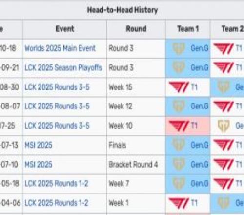 電競(jìng)體育04月08報(bào)道 LCK常規(guī)賽,T1在Bo3中0:2不敵GEN.G。在雙方近10個(gè)大場(chǎng)交手中,T1僅在去年常規(guī)賽贏(yíng)過(guò)1場(chǎng),其他都由GEN取勝。