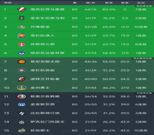 NBA西部最新積分榜
