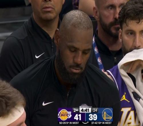 而面對勇士前,湖人50勝29負,排在西部第5位,落后第3名掘金1.5個勝場,比身前的火箭少0.5勝場。湖人沖到西部第3的希望不大,若來到第4位將在季后賽首輪多1個主場優(yōu)勢。不過在賽前湖人已是3連敗,球隊不僅士氣低落,而且陣容殘缺不齊。賽前詹姆斯跟庫里擁抱致意,而且?guī)炖锎┥狭苏材匪菇?jīng)典戰(zhàn)靴,與老友寒暄。