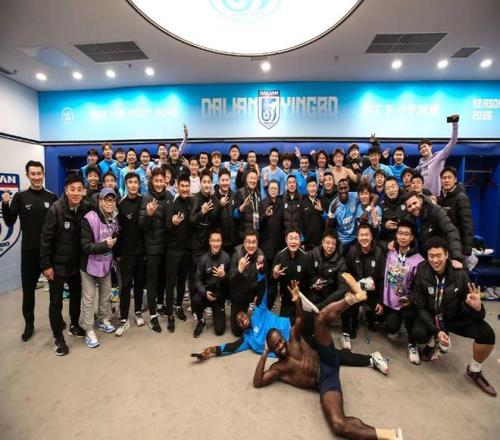 在謝場(chǎng)環(huán)節(jié),英博全體將士與大連球迷再次唱響“莎啦啦”。
