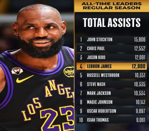 詹姆斯長傳助攻艾頓得分,這是詹姆斯本場送出的第2次助攻,也是個人常規(guī)賽生涯的第12000次助攻。他成為NBA歷史上第4位至少送出12000次助攻的球員,排在歷史前3的依次是斯托克頓、保羅和基德。