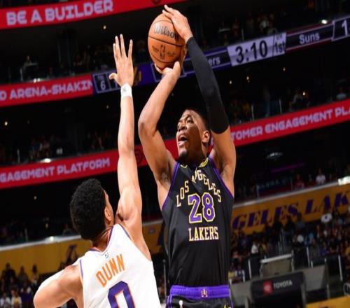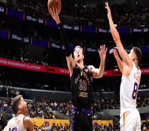 上半場,湖人三人得分上雙,詹姆斯10投8中,高效貢獻22分5助攻,肯納德17分,八村壘10分。太陽只有一人得分上雙,狄龍得到10分。