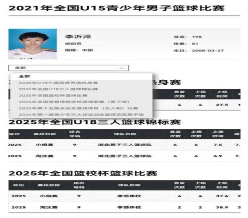 2019年U15全國預賽中,張涵泊與2005年出生的楊瀚森同場競技,后者此后有清晰的U17、U18亞錦賽、U19世界杯及CBA參賽記錄。 李沂澤則在2024年突然以“18歲”身份在U18賽事中爆發(fā),此前無任何青少年賽事數(shù)據(jù)積累,引發(fā)公眾對其“改名改齡”以多打一屆全運會的質(zhì)疑。