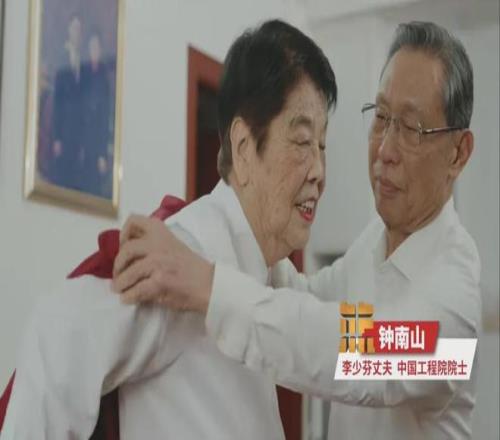 李少芬丈夫鐘南山親手為妻子穿上“名人禮服”,并說道“很不容易啊,能夠穿上這個衣服”“這樣挺好看的”“很少見到你那么興奮,那么高興,也是我們家的一個光榮?!?/p>