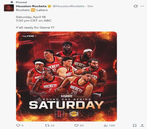 湖人擊敗爵士,掘金擊敗馬刺,火箭大勝灰熊,最終西部3-6的排名確定,掘金、湖人、火箭、森林狼,所以湖人首輪要打火箭,湖人手握主場優(yōu)勢,目前湖人官方已經寫出4月18日將在主場對陣休斯頓火箭隊。