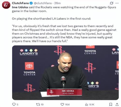 烏度卡作為火箭主帥總結了這個賽季也展望了對陣湖人,先說總結: