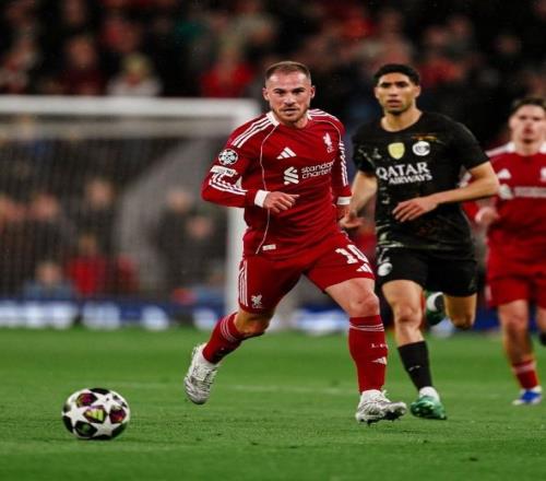 首回合在王子公園球場(chǎng)2-0獲勝的法甲巨無(wú)霸,此役遠(yuǎn)征安菲爾德球場(chǎng),依舊沒(méi)有絲毫懈怠,主教練恩里克擺出了球隊(duì)最擅長(zhǎng)的433陣型,薩福諾夫鎮(zhèn)守龍門(mén),阿什拉夫、馬爾基尼奧斯、帕喬和門(mén)德斯構(gòu)筑后防,若昂內(nèi)維斯、維蒂尼亞和埃梅里坐鎮(zhèn)中場(chǎng),杜埃、登貝萊和克瓦拉茨赫利亞組成進(jìn)攻三叉戟。