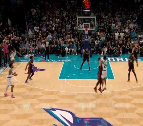 熱火兩罰一中,剩28秒領(lǐng)先4分。其實(shí)落后3分還剩接近30秒,按理來(lái)說(shuō)黃蜂完全可以防下一個(gè)回合然后尋求絕平三分的機(jī)會(huì),但他們選擇搶時(shí)間,拉長(zhǎng)回合,就是相信自己的投射能力。