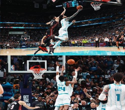 三球最后一個(gè)回合救贖自己,強(qiáng)行突破上籃打進(jìn)準(zhǔn)絕殺,黃蜂再次反超!三球此時(shí)倒地,熱火有暫停的情況下快發(fā)球,想要趁亂打一個(gè),米切爾快速運(yùn)球到前場(chǎng),繞過(guò)懷特準(zhǔn)備上籃,結(jié)果面對(duì)著布里奇斯和米勒的雙鬼拍門,布里奇斯釘板大帽殺死了最后的比賽懸念。