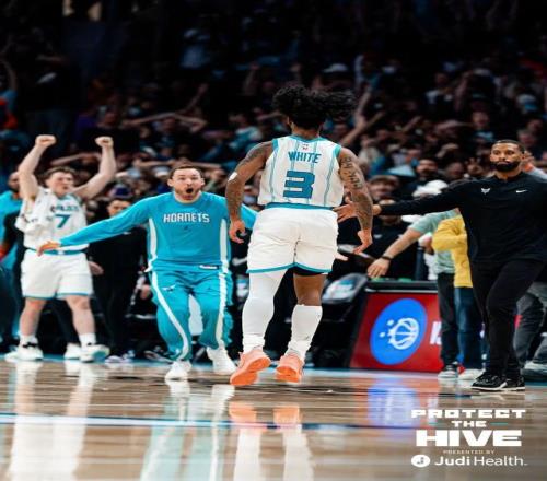 但科比-懷特根本不給熱火這個(gè)機(jī)會(huì),暫?;貋?lái),懷特在邊線接球轉(zhuǎn)身,沒(méi)有絲毫停頓直接三分出手,籃球空心入網(wǎng),絕平三分命中!當(dāng)時(shí)的比賽時(shí)間還剩12.9秒,但懷特投得就像只剩0.9秒一樣,關(guān)鍵還投進(jìn)了。希羅絕殺三分不中,黃蜂延續(xù)比賽。