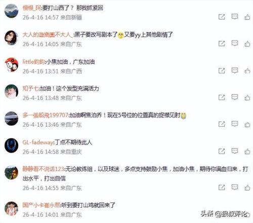 球迷對于焦泊喬的回歸,不少送出了肯定的態(tài)度,尤其是發(fā)型調(diào)整后,整個人感覺開朗了。