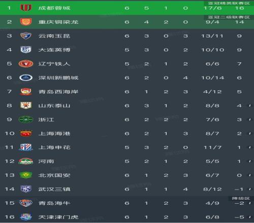 本輪中超其他場次同樣精彩:成都蓉城客場憑借韋林頓點射1:0險勝武漢三鎮(zhèn),守住榜首;重慶銅梁龍主場2:0擊敗深圳新鵬城,豪取三連勝穩(wěn)居第二;青島海牛四次中柱,0:0戰(zhàn)平西海岸;北京國安客場0:0悶平浙江,已經(jīng)連續(xù)5輪不勝,僅排第13位。