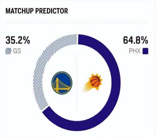 賽前,美媒ESPN對本場比賽進(jìn)行了勝率預(yù)測,太陽隊勝率高達(dá)64.8%,優(yōu)勢明顯,勇士勝率則意外僅有35.2% 。