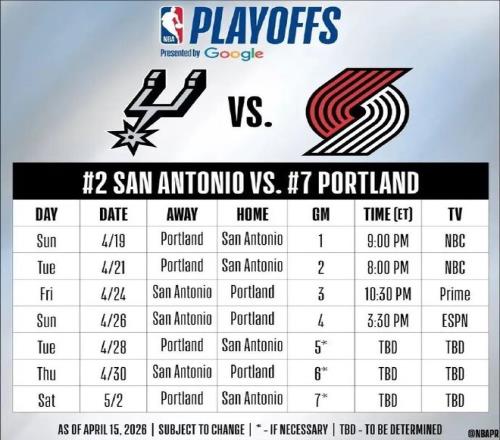 我們看看季后賽的賽程安排