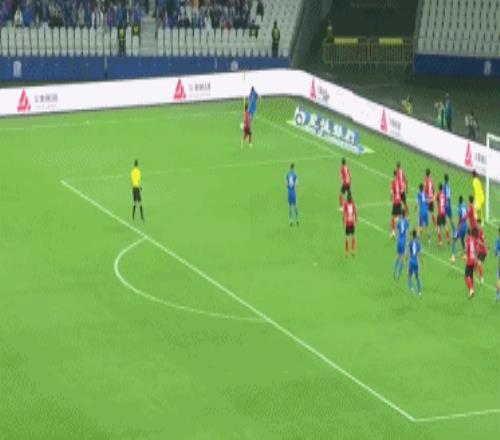 第17分鐘,高天意左路橫傳,金順凱小禁區(qū)頭球沖頂破門,2比0!