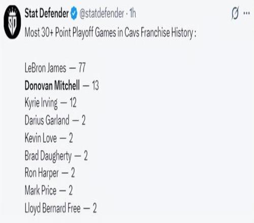 這場比賽后米切爾還創(chuàng)造多項紀(jì)錄:1.這是他季后賽生涯第32場30+;