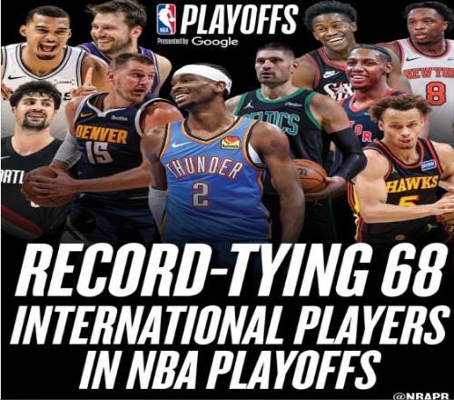 除此之外,還有不少國(guó)家有1位國(guó)際球員參加NBA季后賽。