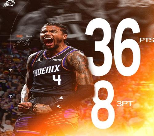 賽后杰倫-格林在主場受到了鳳凰城球迷的歡呼/吶喊,他附加賽G1拿到35分2個(gè)三分球,附加賽兩場比賽格林合計(jì)拿到71分+10個(gè)三分球,場均35.5分5.5板1.0斷2.0帽,命中率57%,三分球命中率47%。