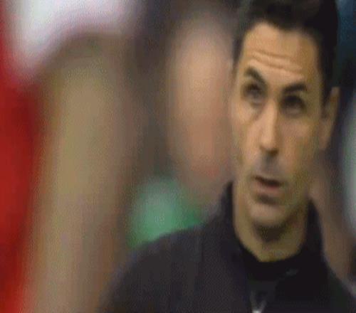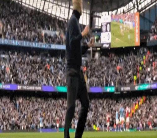 看到哈弗茨為阿森納扳平比分之后,阿爾特塔高舉雙臂慶祝,瓜迪奧拉則抱頭遺憾。