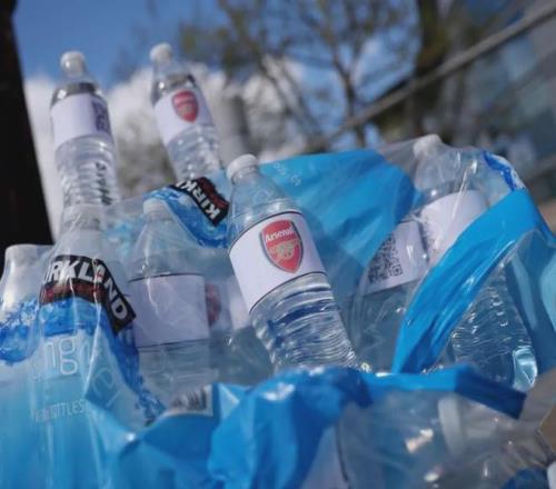賽前印有阿森納logo的瓶裝水在伊蒂哈德球場(chǎng)外售賣,2英鎊1瓶。