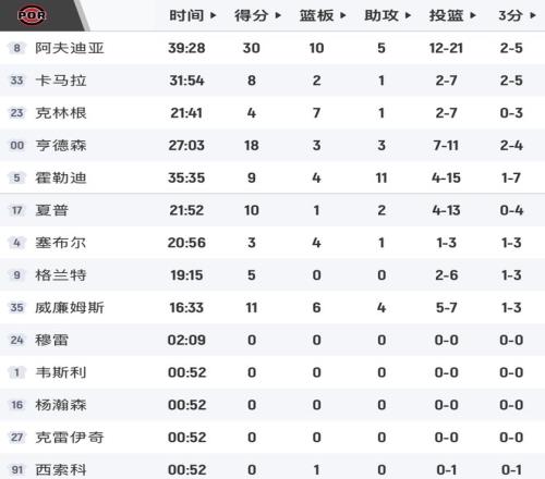 楊瀚森在比賽最后時(shí)刻被換上,上場(chǎng)52秒,走個(gè)過(guò)場(chǎng)。目前看屬于小楊的NBA首個(gè)賽季已經(jīng)結(jié)束了,因?yàn)樗蛊绽爻R?guī)時(shí)間換人時(shí)根本不考慮他。開(kāi)拓者這場(chǎng)表現(xiàn)最差的是克林根,7中2,三分3中0,出場(chǎng)接近22分鐘僅有4分7板3犯規(guī),被文班打爆了,表現(xiàn)遠(yuǎn)不如11分6板4助的羅威。