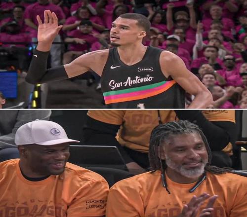 與此同時(shí),喬治·格文、大衛(wèi)·羅賓遜、鄧肯、吉諾比利等一眾名宿也來到現(xiàn)場(chǎng),他們同樣身著加油T恤,見證球隊(duì)重返季后賽的首戰(zhàn)。
