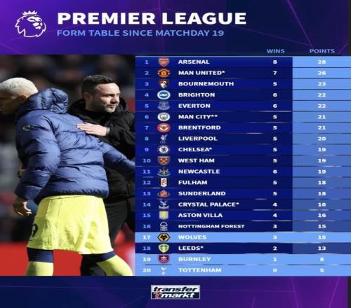更嚴重的是,熱刺的排名并不是最近才跌下來的。從第19輪之后的階段積分榜來看,他們只拿到5分,排在20支球隊的最后;同期的桑德蘭拿了18分,伯恩茅斯拿了23分,連保級圈附近的隊伍都比熱刺更會拿分。保級拼的就是在這個階段誰能把分數(shù)拿住,過去的實力和名氣在現(xiàn)在沒有任何作用。熱刺后半程連續(xù)輸球,完全是自己將自己踢到了如今的被動位置。