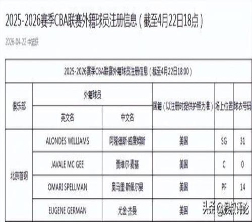 北京時(shí)間4月22日,根據(jù)CBA官方的公示,北京男籃正式裁掉了小外援貝利,注冊(cè)新外援阿隆德斯·威廉姆斯。